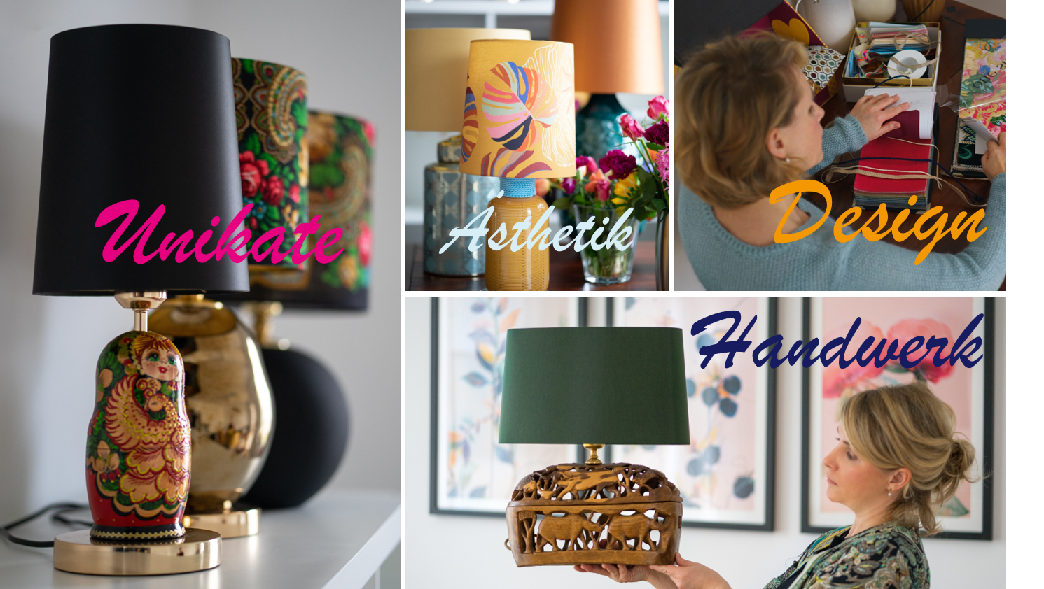 und Lampenschirme in maßgeschneiderter Handarbeit hergestellt.